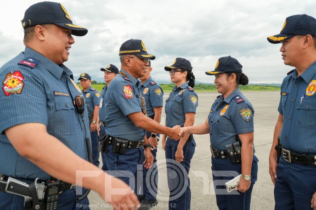 The Chief PNP together with his wife, Mrs. Patricia Jane P. Torre, the National Adviser of the PNP Officers’ Ladies Club Foundation Inc. (OLCFI), along with several high-ranking officials from the National Headquarters, was warmly welcomed by the Police Regional Office 12 (PRO 12) led by Police Brigadier General Arnold P. Ardiente, Regional Director.