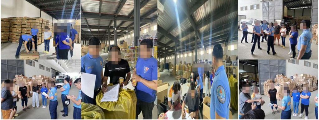 The search led to the arrest of five suspects, one Chinese national and four Filipino nationals, and the seizure of thousands of boxes of unregistered TIXX-brand appliances. Confiscated items included gas stoves, air fryers, water dispensers, heaters, vacuum cleaners, air coolers, and multifunctional steamers, with a total estimated market value of Php43,733,700.